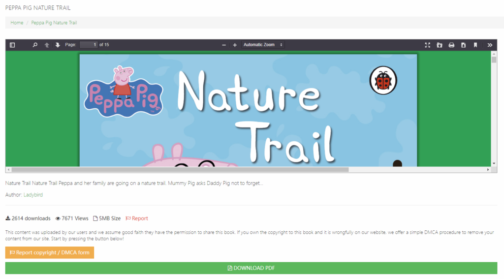 当然,中文资源应该没有,不过,英文资源还不少。我本来想找一些小猪佩奇的绘本资源,在这里还找到不少,只需要等几十秒钟就可以免费下载,还不错。