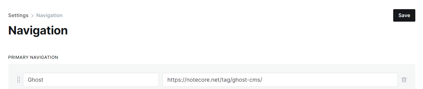 然后到设置页面,Navigation里面,将导航的名字和网址添加上去,保存后,页眉的配置就完成了。