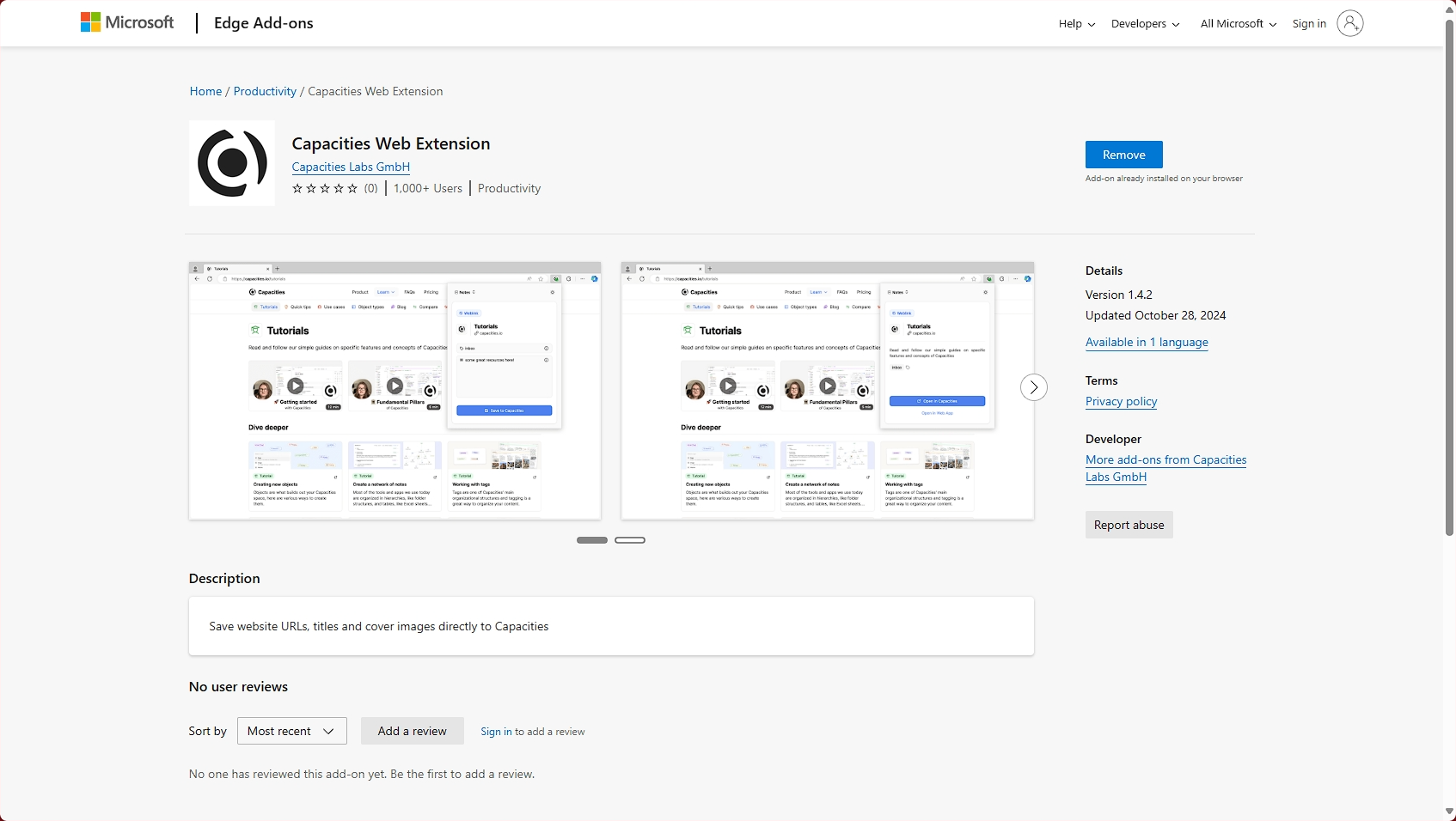 去Edge浏览器(或其他浏览器)的插件市场搜索“Capacities Web Extension”,然后安装,在浏览器登录Capacities账户,就可以使用插件。
