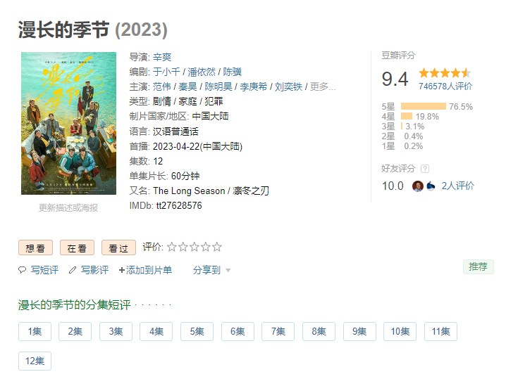 2023年有一部很精彩的连续剧,豆瓣评分一路走高,那就是《漫长的季节》。