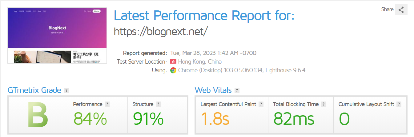 换个主题,立马变样,下面是换成Ruby主题后的成绩,立马变成B,但是网站也是3秒加载完成,你说这0.5秒,有那么大的差距吗?
