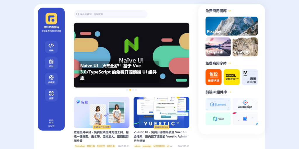 非常有名气的免费图片站点,这里主要推荐一个代理站点:https://unsplash.dogedoge.com