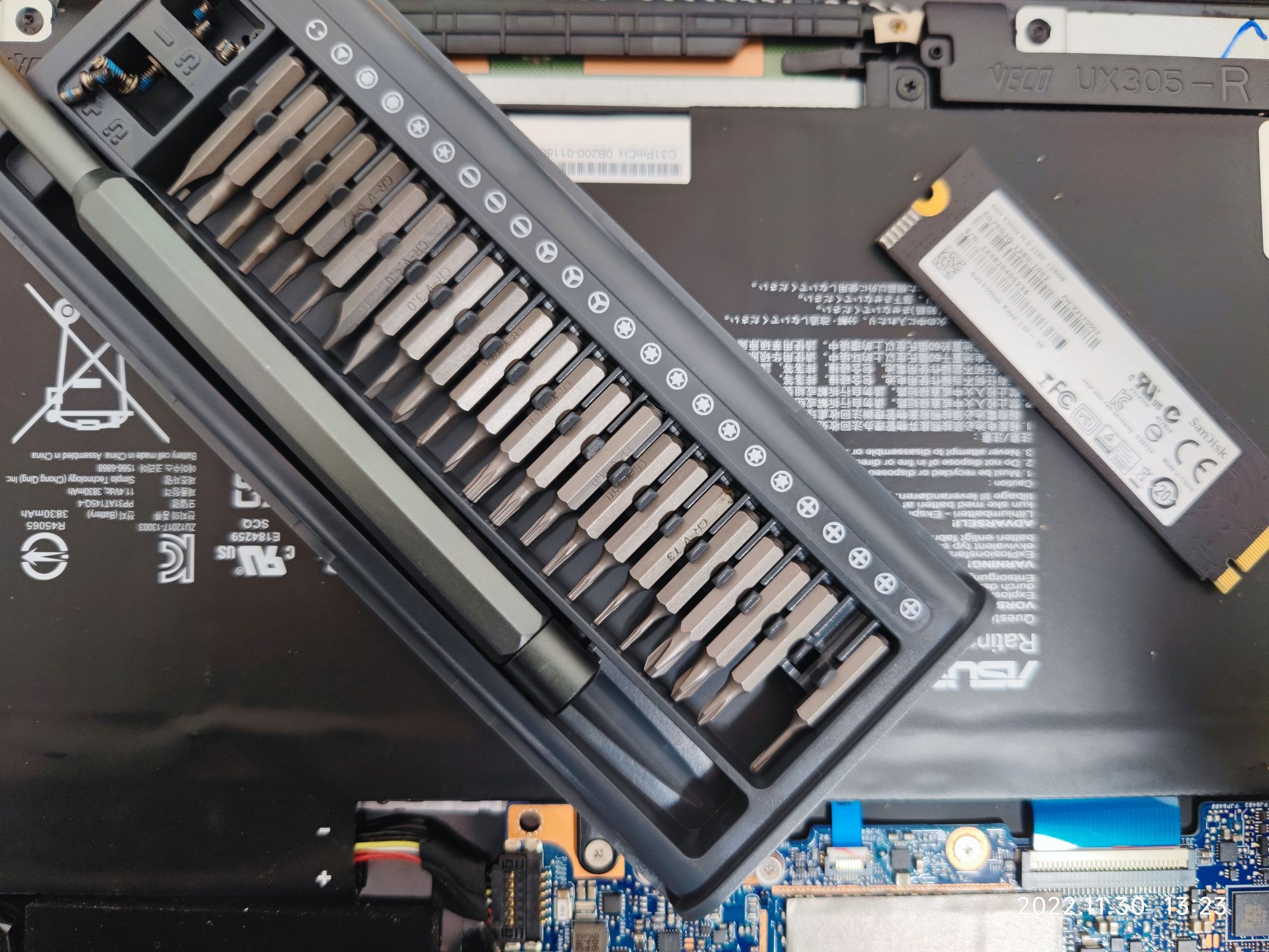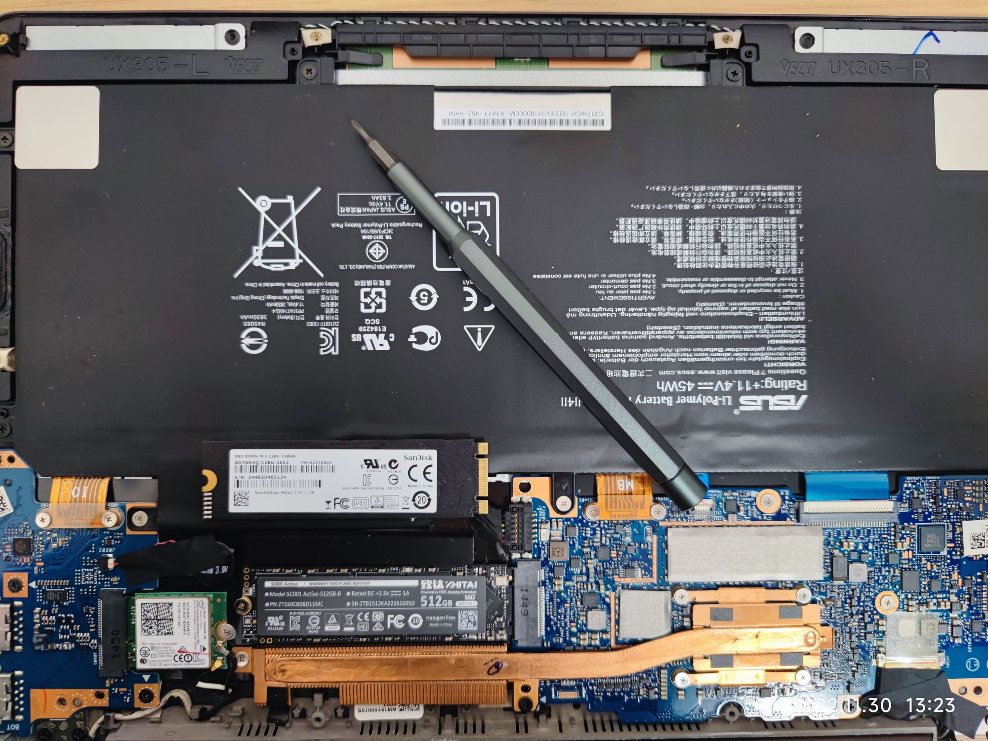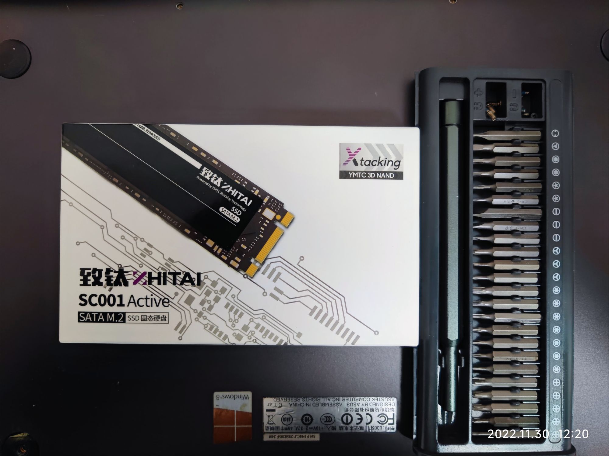 首先,去京东买了工具套装。然后买了闪迪的1T NVMe接口的硬盘,价格真心便宜。结果把机器拆开后,发现两款硬盘外观不一样。然后去查了一下原装的型号,是SATA3总线NGFF接口的。
